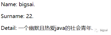 <p>Detail: <span th:text="${user.detail}">好好学习</span>.</p>