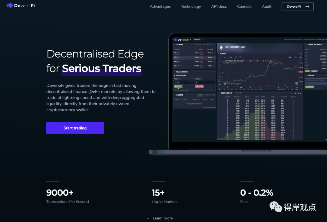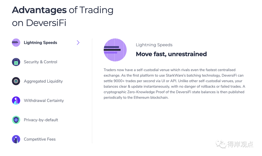 DeversiFi 使用 zk-STARK 隐私层,它允许你进行匿名交易,并且它还将交易结算能力提升到每秒 9000次。