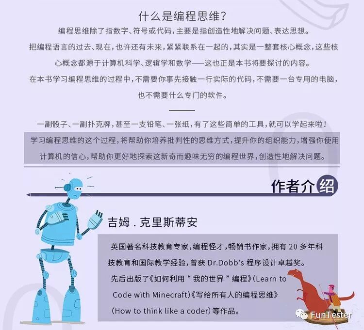 最近刚读了一本书《写给所有人的编程思维》,虽然本书书名这么起,但却是一本针对孩子的编程书。读完之后感觉还是很不错的,豆瓣上不少吐槽这本书就是讲皮毛,个人觉得这本书最大的功效就是两点:系统介绍和好奇心启发。十分推荐这本书。