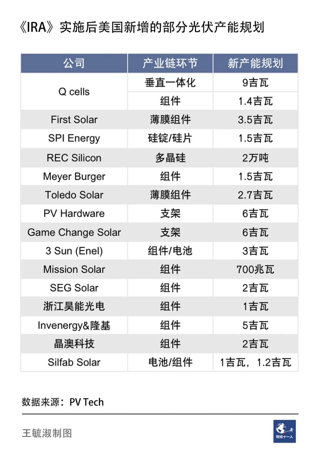 全球第一块太阳能电池的诞生地美国,正以空前的力度扶持本土太阳能制造业。美国政府出台了《通胀削减法案2022》(Inflation Reduction Act of 2022,下称《IRA》)等一系列政策,试图重振本土制造业,其中,太阳能相关的制造业是政策支持重点。《IRA》出台半年多以来,美国本土新增光伏制造产能规模已超过47GW,其2022年新增光伏装机为18.6GW,仅次于中国的87.4GW。但是,美国的光伏组件三分之二以上依赖进口,中国光伏产品则接近三分之二出口到全球;美国的太阳能发电装机成本全球最高,中国光伏组件制造成本全球最低。美国认为,摆脱对中国光伏产品的依赖,建立本土光伏产业链,是维护能源安全的前提,也是夺取绿色低碳经济话语权的关键。因此,美国一方面以人权等各种理由拒绝进口中国光伏产品,一方面不惜以高成本新建本土的太阳能制造工厂。《IRA》计划在10年内发放7370亿美元补贴,其中3690亿美元用于应对气候变化和提升能源安全,包括对太阳能产业各环节的补贴和税收优惠。据彭博新能源财经测算,《IRA》对美国太阳能全产业链的补贴理论上可达到17美分/瓦,基本接近于中国目前的生产成本。国际能源署(IEA)统计数据显示,全球太阳能制造业里,以晶体硅为原材料的光伏组件占全球产量的95%以上,其余的是碲化镉(CdTe)薄膜光伏产品。在晶硅光伏领域,中国各个环节的产能都占全球70%以上,技术和成本一骑绝尘;薄膜光伏产品则是美国主导。美国对本土光伏产品的补贴包涵这两类产品,薄膜产品的补贴力度比晶硅更大。《IRA》发布半年多以来,宣布在美国新建光伏产能的企业大多选择了晶硅路线,其中也包括中国的光伏企业。美国能源与气候变化政策资深研究人士、绿色创新发展中心董事莫争春对《财经十一人》表示,《IRA》本身没把中国公司排除在外,但美国试图摆脱对中国的依赖,这个意图明显。中国光伏企业在美国投资,可能会遇到比过去更多的障碍。例如2022年9月签发的关于加强审查在美外国投资的总统行政令中,明确将先进清洁能源和气候适应技术列为影响国家安全的技术领域。中国企业投资海外,除了关注本行业动态以外,还应加倍关注地缘政治动态。不过,在当前的国际光伏产业格局下,美国发展晶硅光伏产品,离不开全球光伏产业的支撑。能源基金会总裁办主任辛嘉楠表示,《IRA》支持的光伏本土产量不到美国新增需求的20%,仍有大量如逆变器这样的核心零部件需要进口。