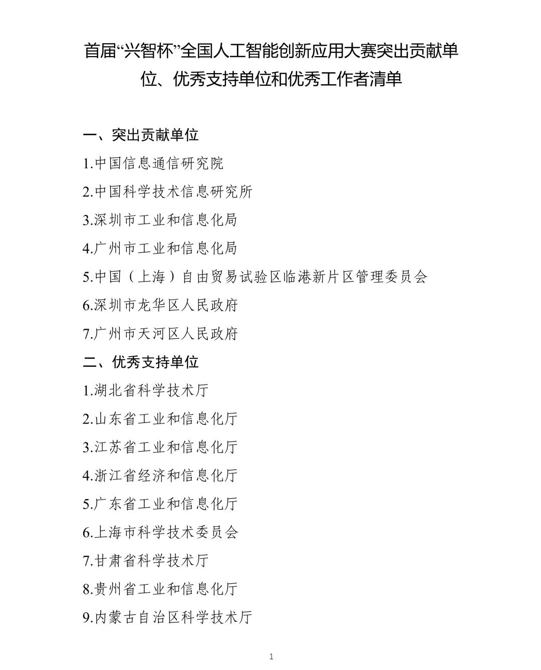 首届“兴智杯”全国人工智能创新应用大赛突出贡献单位、优秀支持单位和优秀工作者名单(可上下滑动查看)