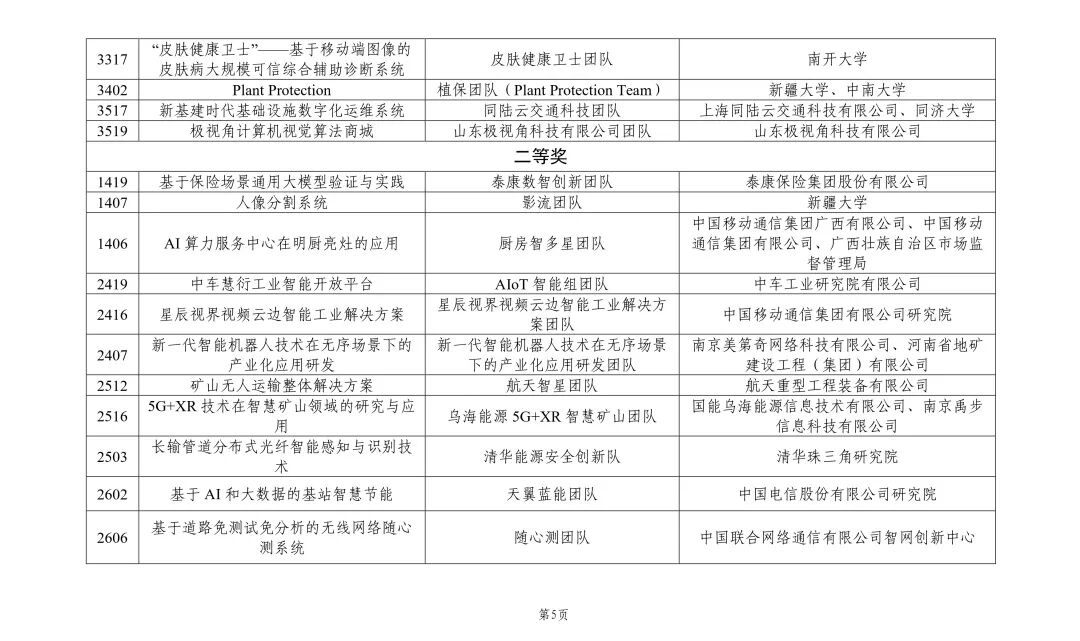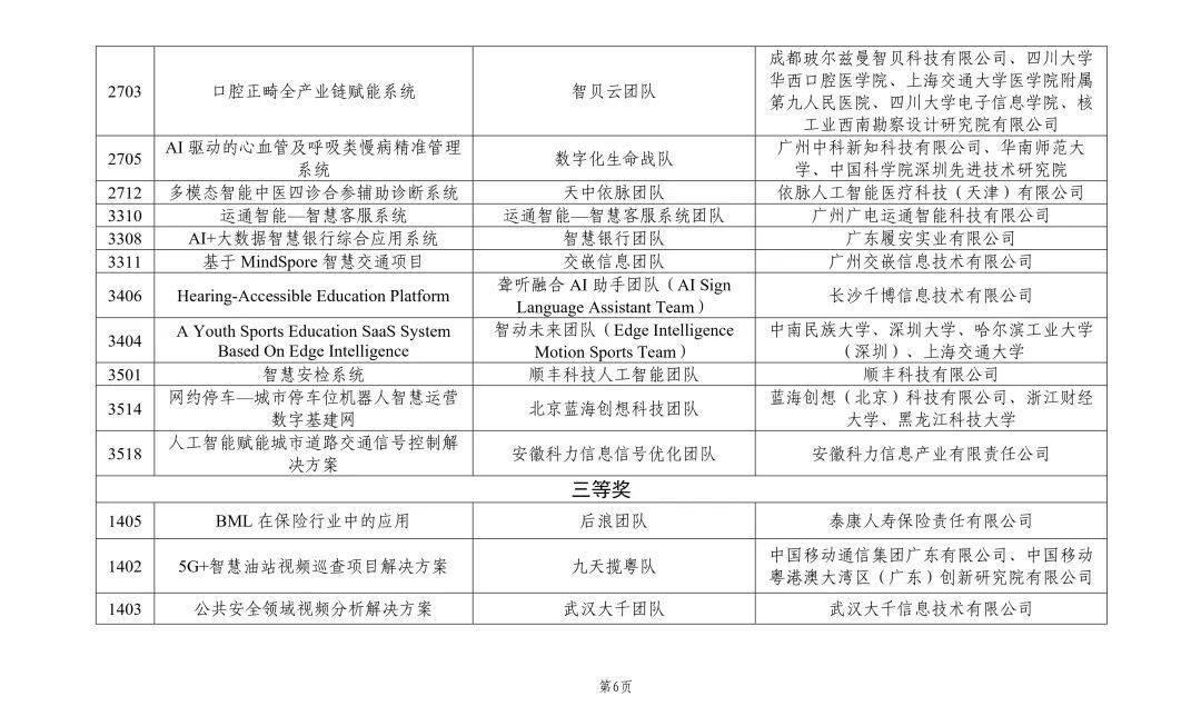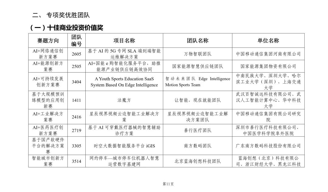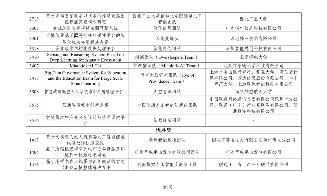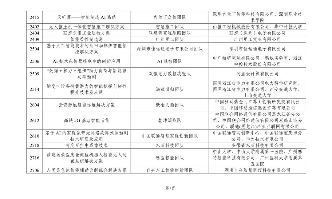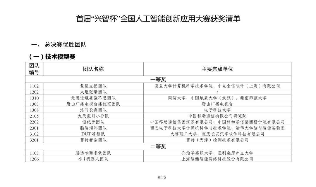 首届“兴智杯”全国人工智能创新应用大赛获奖清单(可左右滑动查看)