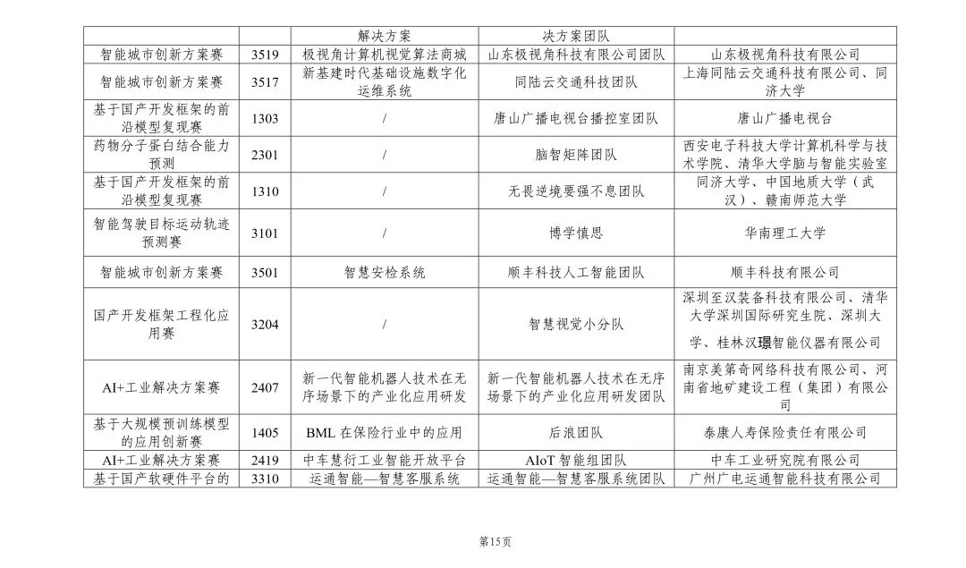 首届大赛紧贴技术及行业难点、痛点、热点问题,设置16道赛题,体现出三大特点:一是引领性、创新性强,围绕多模态、大模型、可解释性算法等热点研究方向设置赛题,加速我国前沿技术创新;二是与产业紧密结合,聚焦工业、能源、医药医疗、网络通信等市场空间大、受众群体广、转型升级需求强烈的领域,加速人工智能技术与实体经济融合;三是关注技术产业生态发展,围绕国内开发框架工程化应用、软硬件一体化发展等技术基础生态,以及智能城市、可持续创新发展等产业化应用生态构建,促进人工智能产业生态圈蓬勃发展。