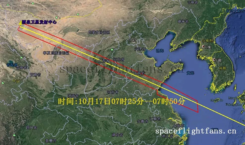 神舟十一号飞船发射航迹图(来源 | 航天爱好者网)