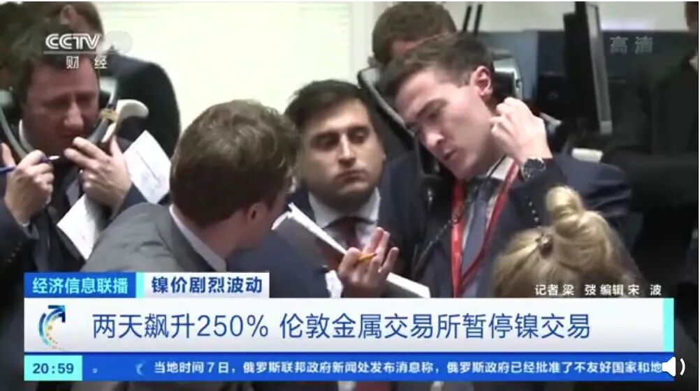 8日,金属镍期货价格涨幅一度扩大至100%,连破每吨6万、7万、8万、9万、10万美元关口,两个交易日累计大涨248%,持续刷新历史纪录,最终伦敦金属交易所不得不决定暂停当天的镍交易。