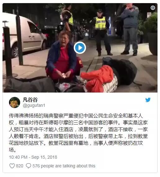 这三名中国游客仅仅是可能有少许过错而已,瑞典警方凭什么将中国公民放逐到完全无法保证生命安全的地方?他们口口声声的“人权”哪里去了?