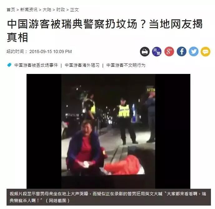 这里需要插一句的是,宣称曾先生一家在遭到瑞典警察“暴力对待”后次日仍乐呵呵继续游玩的消息,是个恶毒中伤的谣言。