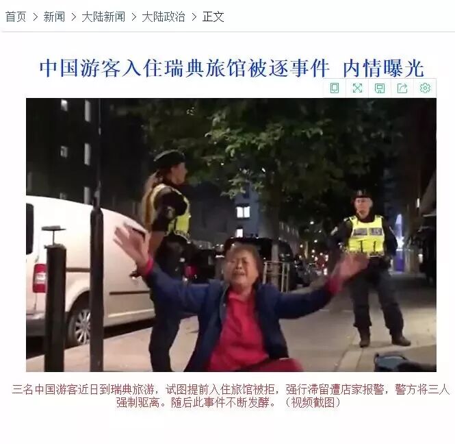 9月16日14时50分,“法沦功”网站再次发文《中国游客入住瑞典旅馆被逐事件 内情曝光》,其中转发了优兔(YouTube)账号“艾中华”发布的当事人疑似假摔的现场视频片段。