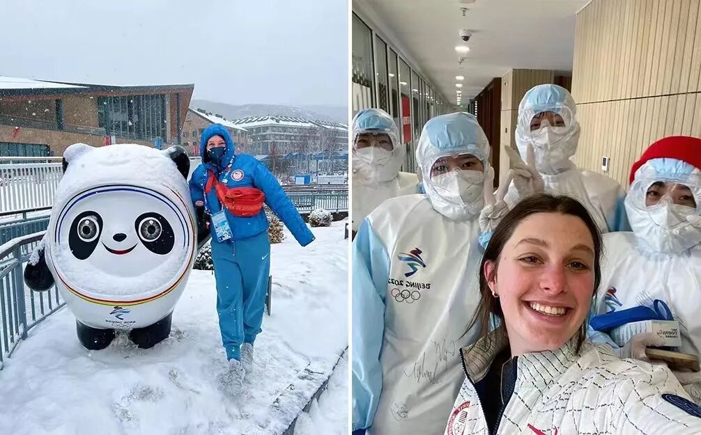 在那之前,她已经在用短视频记录自己每天在奥运村的日常,她会偷拍训练场远处的冰墩墩,也会像游客一样,激动地和奥运五环合影。回到宿舍,还用一种惊奇的语气,给大家演示运动员房间里的电动床垫,并赞叹,「very cool」。