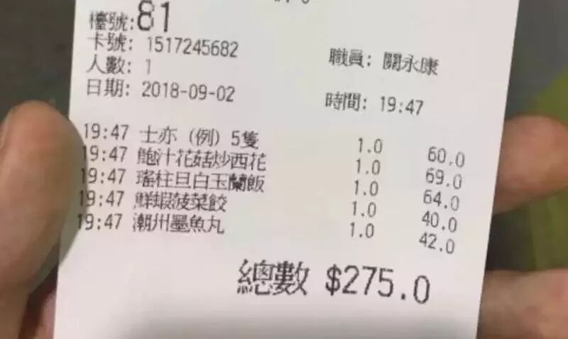 刚才说过,香港菜单极善于缩写,已经发展成了一套外人不得其门而入的独立语言系统。在菜单对应的消费小票上,这套系统发挥到了极致。