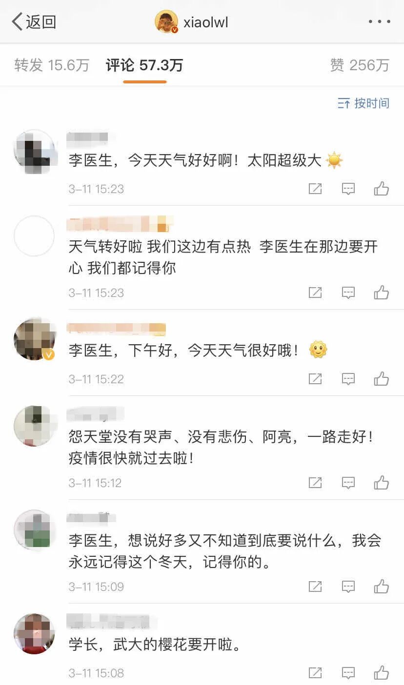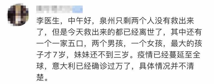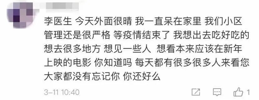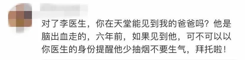 有网友给李医生留言,希望他能给自己在天堂的父亲问好。