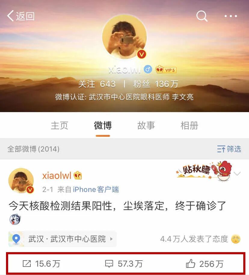 然而最近,有很多网友发现,李文亮在2020年2月1日发出的最后一条微博,居然一直活着。