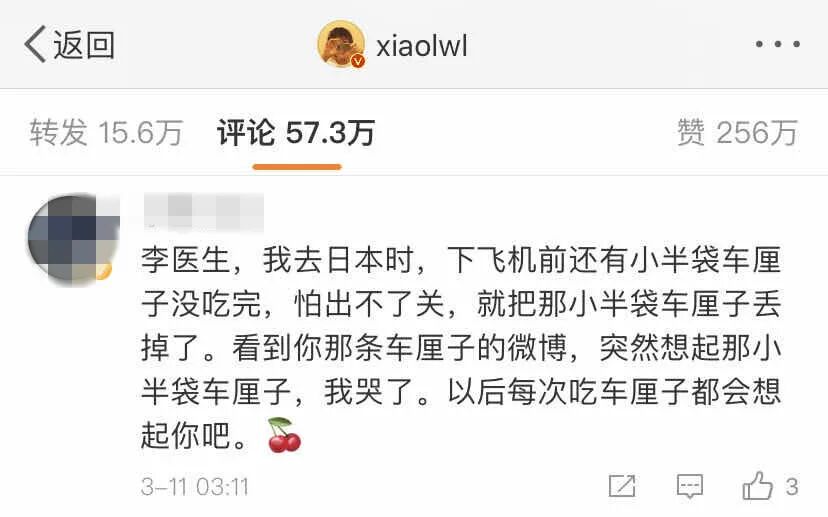 李文亮喜欢吃车厘子的事情广为流传,很多网友触景生情: