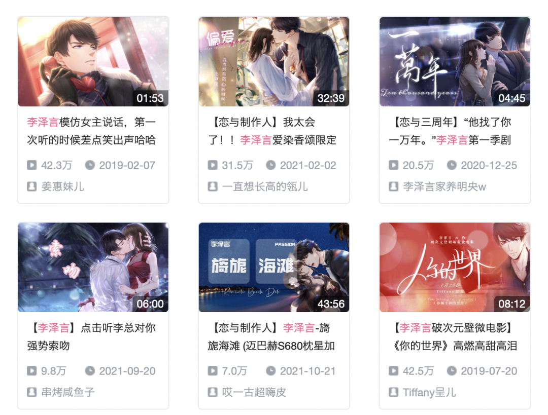 还有一些是重新理解、重新组合,剪辑而成的新故事。我印象很深的一个视频是根据《想见你想见你想见你》这首歌剪辑的,李泽言在游戏里是时空之主的设定,很符合那句歌词,“穿越了千个万个时间线里,人海里相遇”。