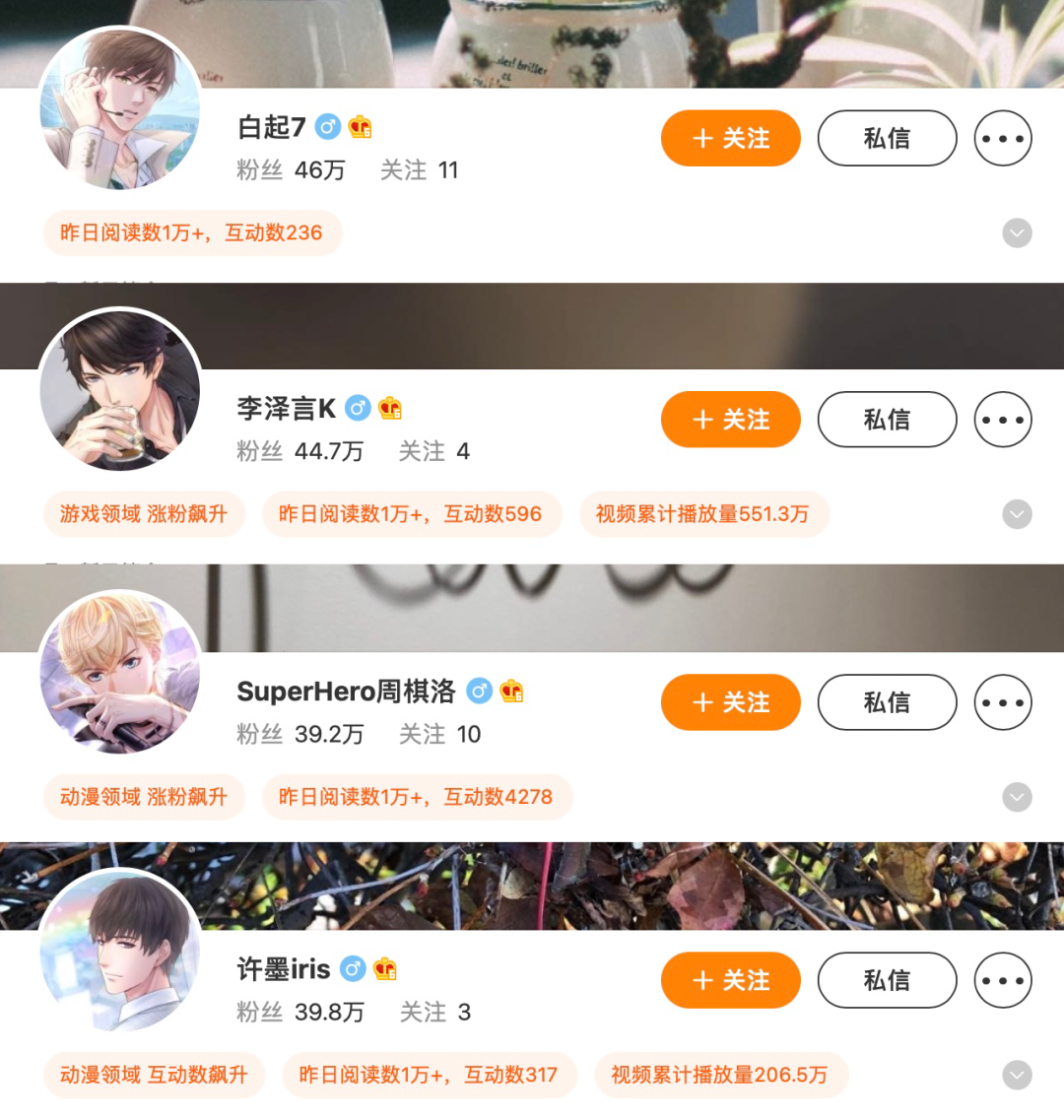 《恋与制作人》四个人物角色的微博账号