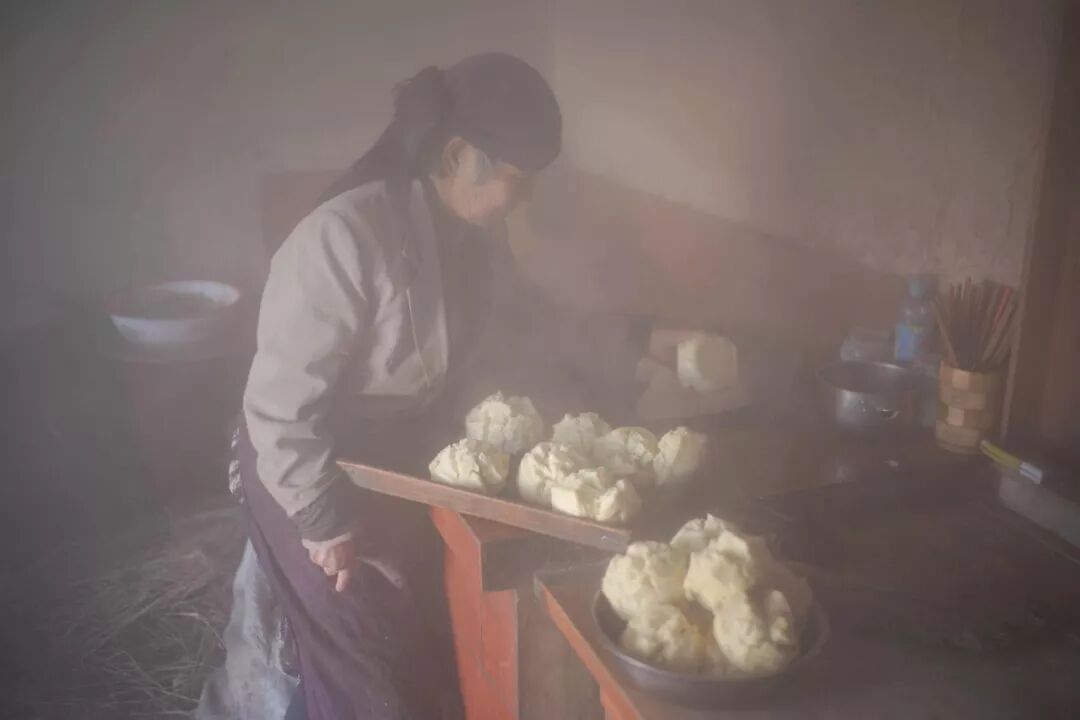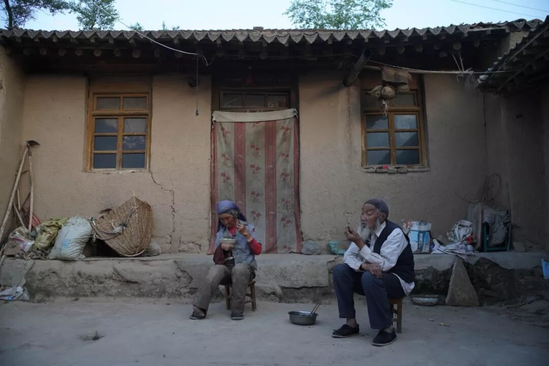 老妇喂鸡喂狗、下地干活、做晚饭。她会蒸一锅开花馍馍,黯黑的厨房雾气腾腾。老汉拿了搪瓷盆,从大缸里夹出腌萝卜丝和一坨油肉结冻的臊子,在炉火上搅拌加热,再撒点盐。一天就吃两顿,看了新闻联播,外面黑了就睡了。
