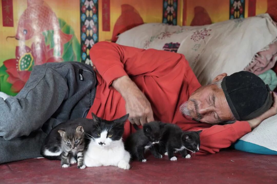 2018年6月19日,周克俭养的猫生了4只小猫,他逗玩的猫,有意无意地说,等你们长大了,就都走了。