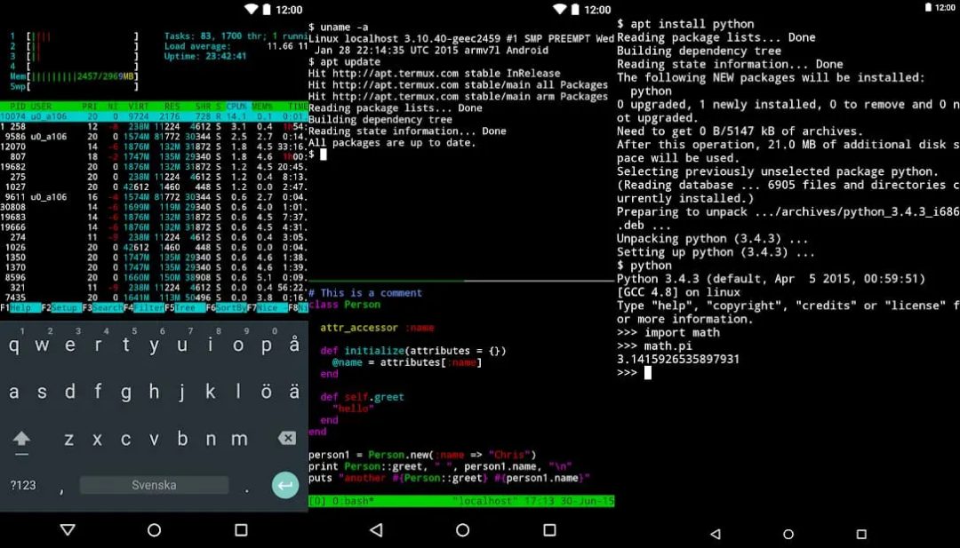 这是一个专为 Android 设计的终端模拟器应用,它提供了 Linux 环境和 Shell 通过自带的包管理器,能够在手机上安装和运行 ssh、Python、gcc、htop、git、vim 等工具。你就可以在 Android 设备上执行 Linux 命令、编程、运行脚本、远程访问服务等操作。