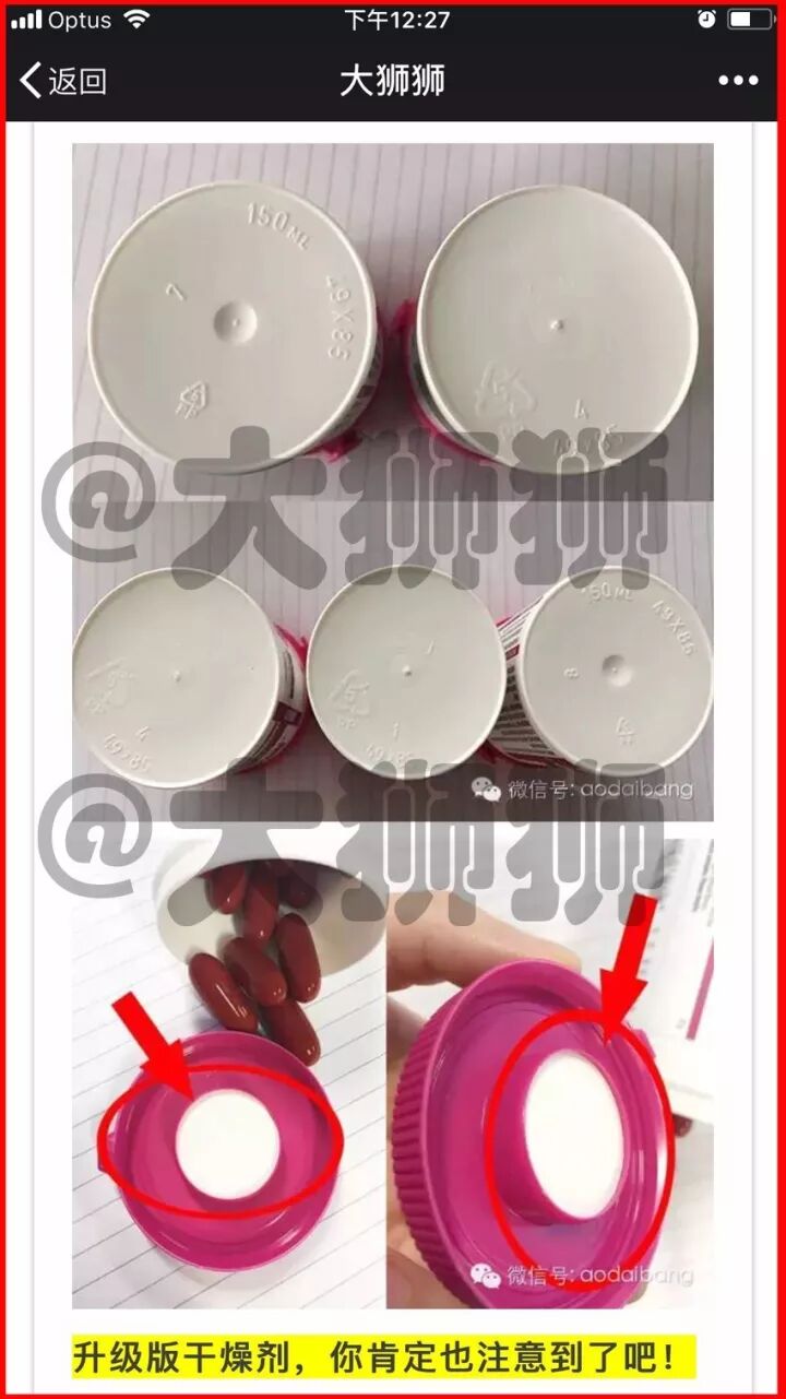 在瓶盖上的干燥剂是后来才有的升级版,一开始明明都是一包包的在瓶子里的好嘛?而且,至今为止,两种干燥剂版本在正品中也都存在...