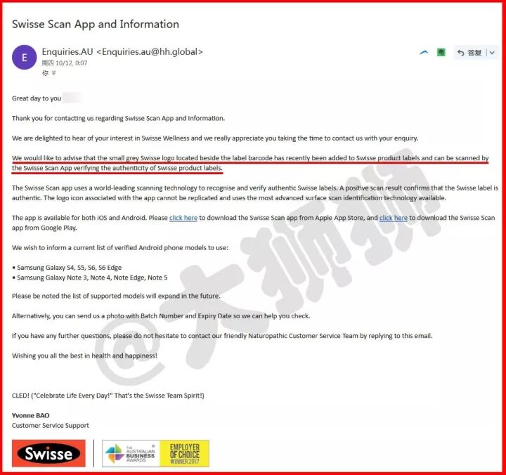 再仔细看下Swisse的官方邮件,其实已经说的很清楚了: