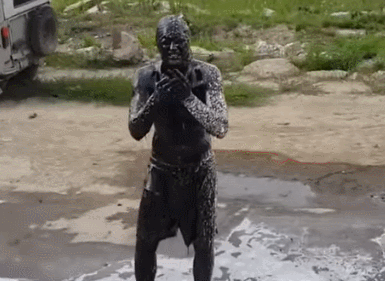 俄罗斯小伙在某个焦油坑里游泳
