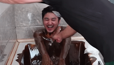 脱掉所有衣服躺进洁白的浴缸,让流淌着的深棕色液体袭满全身,直至脖子以下全部覆盖。