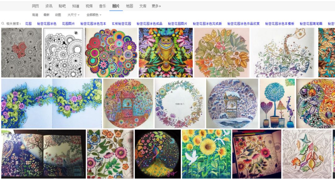 这种降低了消费者创作门槛的绘画形式使得更多人愿意购买,并通过互联网贴出自己的“作品”,从而满足社交需求。⑪借由出版社的宣传策略,以及消费者在微信朋友圈、新浪微博等社会化媒体上对自己填色画作的拍照分享,《秘密花园》的每张画都形成了一个由无数不同上色版本所组成的巨大序列,而每个消费者都可以借由自身的社会关系、自己关注的自媒体账号等,在社会化媒体上看到该序列当中的一个部分。