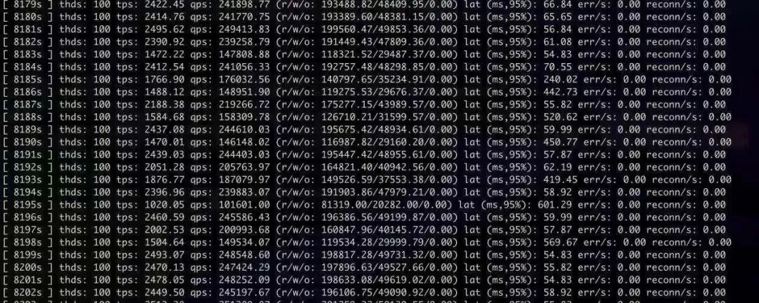 TPS 跌 0 基本缓解,但是依然有比较大的抖动,TPS 从 2400 到 1400,跌幅差不多 40%,CPU 抖动幅度收窄但依然存在(@8183s)。