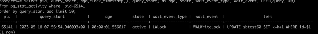 以某个正在执行的事务为例子:trace 一个正在执行事务的 PostgreSQL Backend 进程,中间等锁耗时 1.5s