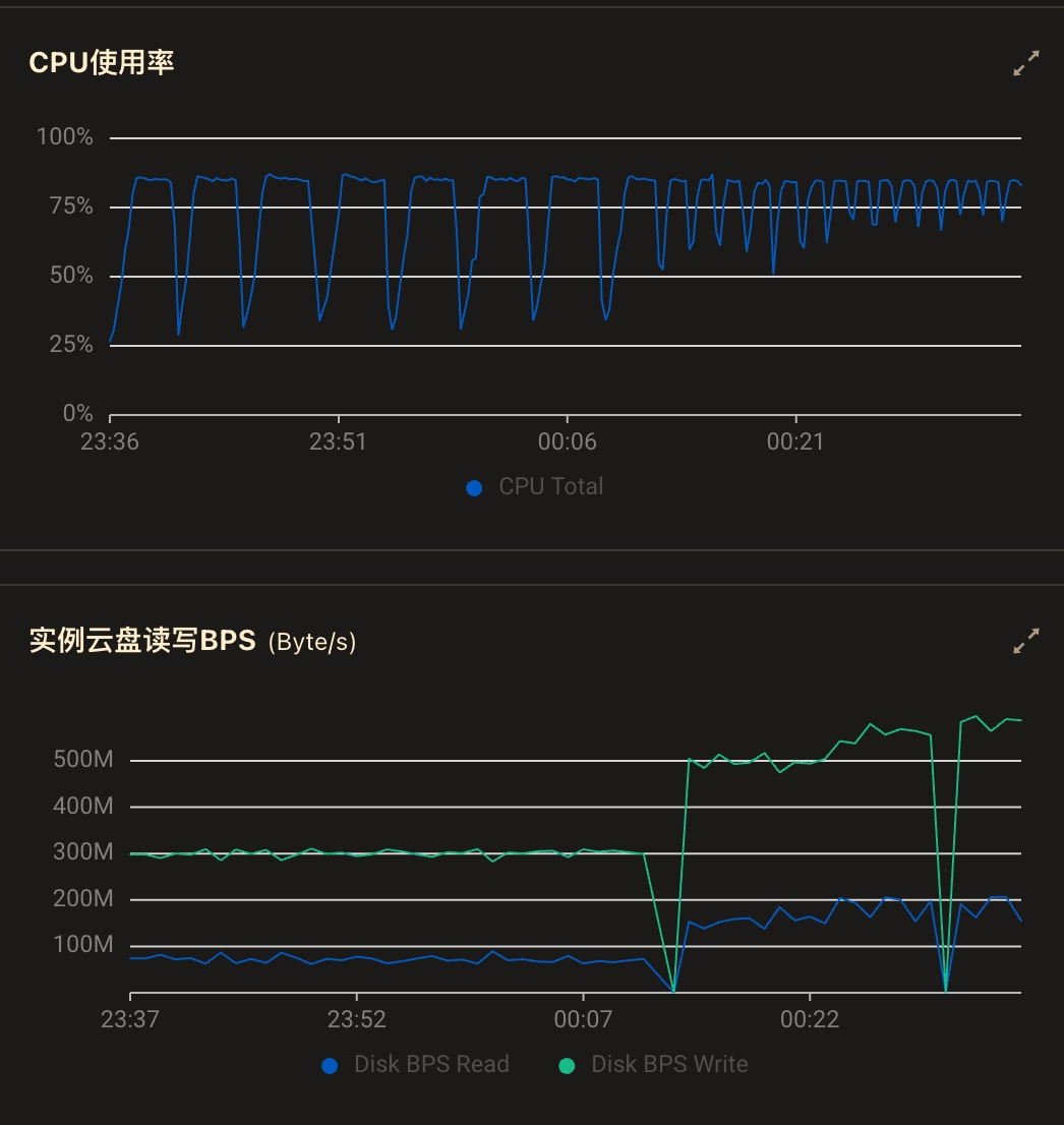 全过程磁盘带宽一直打满: