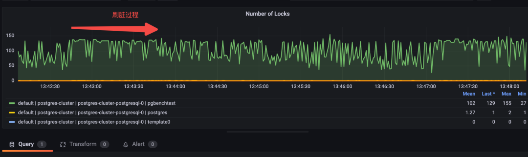此外还发现,在刷脏过程中,锁的数量一直比较高,与非刷脏状态下的对比非常明显: