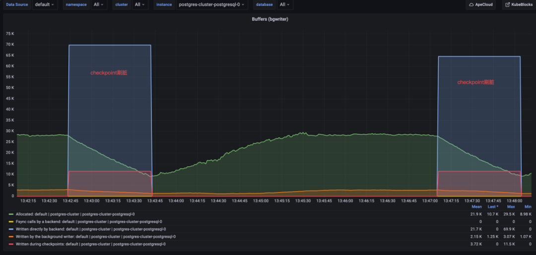 对比时为了公平,KubeBlocks 在下面的测试中开启了 full_page_write。