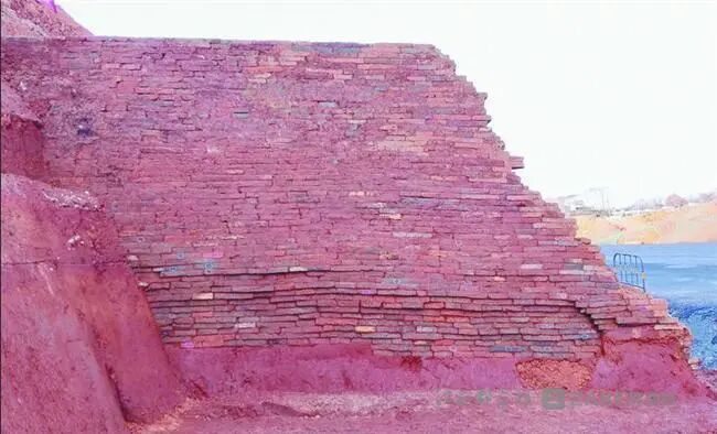 由于西侧城墙上面与内外的填埋堆积太厚,不便人工发掘。于是考古人员转到填埋堆积较薄的公路东侧进行布方发掘。经过发掘,考古人员发现东侧的城墙保存状况较差,内壁只保留了一小段,外壁也是断断续续的——用白砖砌筑的古城墙遗址内壁,长只有3.8米,宽仅0.88米,高度只保留了三层砖;用青砖砌筑的外墙壁长度虽然有24.1米,但遭后世破坏严重,没有完整墙面。