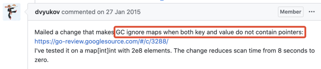 好消息是 2015 年 Go 开发者已经对 map 中无指针的情况进行了优化: