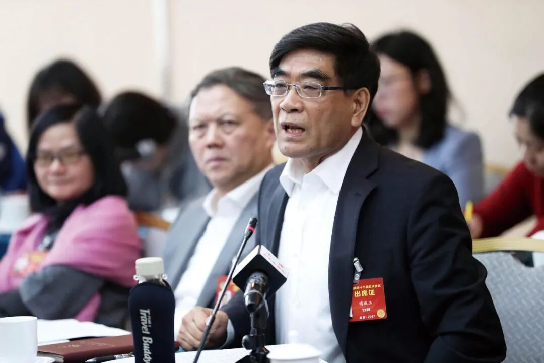 图|2015年3月5日,全国政协十二届三次会议分组讨论政府工作报告。傅成玉(右一)参加经济界委员讨论。