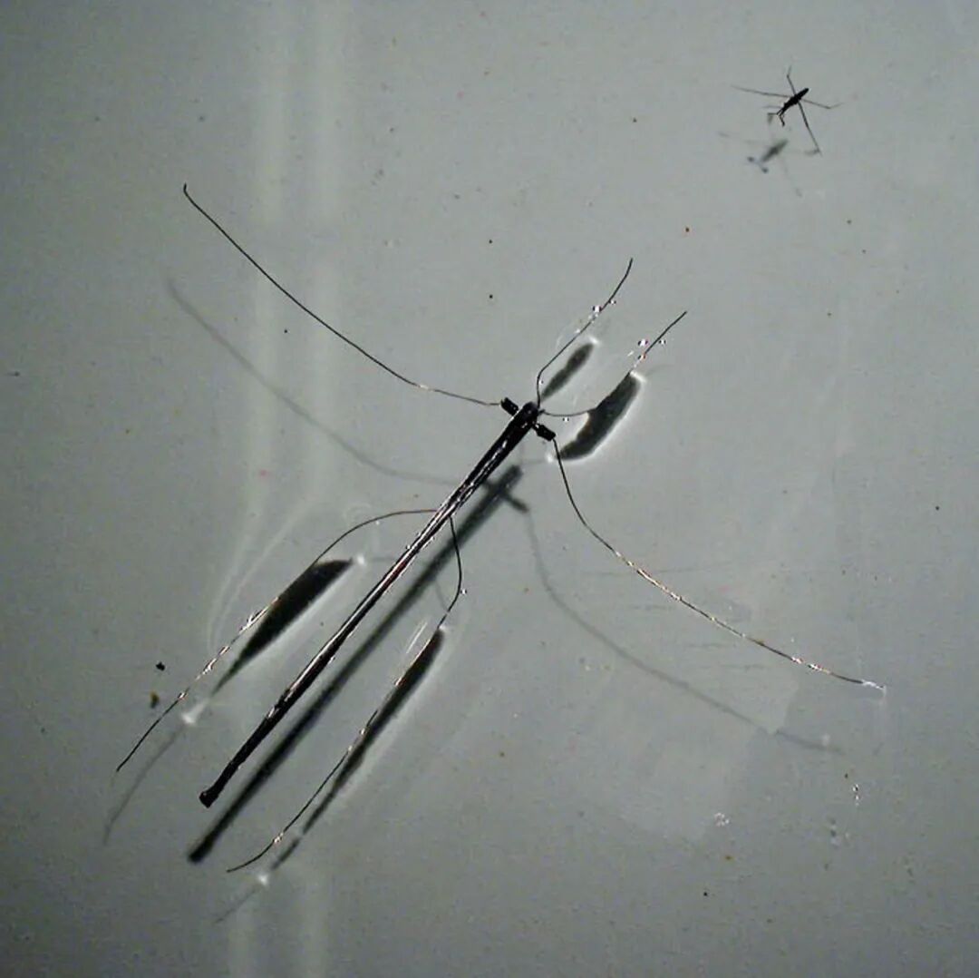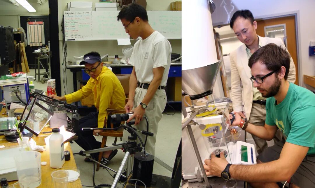 哺乳动物,昆虫,都有毛发。我们先测量了很多动物的毛发。我们发现,一只蜜蜂和一只松鼠都有300万根毛,而人类大概只有10万根头发(我的更少)。毛越多,表面积越大,就容易有越多的灰尘、水滴、花粉藏在里面。一只蜜蜂毛发的表面积,等于一片烤面包。一只猫毛发的表面积和一张乒乓球桌一样大。一只海狸毛发的表面积相当于一个溜冰场。毛发表面积这么大,这些动物是怎么做清洁的呢?我们研究了一下蜜蜂。一只蜜蜂每天要采的花粉是它自己重量的1/3。在这个过程中,它整个身体都会被花粉覆盖。但是我们发现,它2分钟之内就可以把自己弄得干干净净。它是怎么做到的呢? 首先, 它的毛之间的距离,跟一颗花粉的直径是一样的,这样花粉会被卡在毛发的表层,比较容易清洁。其次,因为蜜蜂身体的毛很硬,就像弹簧一样,所以每次它用腿刷毛,毛就会把灰尘弹开。如果它每4秒钟刷一次身体, 2分钟内就可以把整个身体完全清洁干净。医疗行业的工程师受我们这个研究的启发,发明了新型的药贴。原来用于外敷疗伤的纱布表面很平,可以容纳的药量不多。这些工程师受到蜜蜂的启发,设计了新型的“带毛”的药贴,这样就可以放更多的药在里面,帮助外伤的恢复。这个发明已经申请到专利。这是蜜蜂体毛研究的一个意想不到的应用。我从小就觉得自然有一种魔力,尤其是动物。我总是很好奇为什么它们形形色色,而又各有特长。我的父母都是科学家,他们总是鼓励我的好奇心。我的爸爸一直告诉我,大自然可以给我很多启发。夏天,他会带我们去钓鱼、露营。有一次,他在高速路边捡了一头被车撞死的鹿,在回家路上的3个小时,我妹妹就跟那头死鹿坐在一起。回到家我父母一起解剖了那只鹿。我爸爸的好奇心真的会带他到很奇怪的地方。我从小在马里兰长大,很幸运考进了天才班。六年级的时候老师就让我们自己写书。我十年级开始去实验室做实验,研究材料科学。当时我研究的课题是,用实验测试气泡对金属硬度的影响。简单地说,如果你把金属熔解,在液态金属里充气泡,然后再让金属固化,这样形成的带有气泡的新金属会比原来的金属更加坚固。这个项目入围了西屋科学奖的半决赛。大概也是因为这个奖,我考进了麻省理工。我的本科导师因为研究“床单起皱的规律”拿了搞笑诺贝尔奖。他的导师拿了两次搞笑诺贝尔奖:第一次是他研究了一下,为什么茶壶嘴里倒出来的茶水,有时候会顺着茶壶嘴流下来。第二次他研究的是,扎马尾辫的人跑步的时候头发是怎么甩动的。他们的研究给了我很多启发。我的“师傅”和我的“师祖”都拿了搞笑诺贝尔奖,我是第三代获奖者。从他们那里我明白了,会问有意思的问题至关重要。他们说,别人对我的看法我管不了。应用数学家大多对世界充满好奇,他们用应用数学来解答生活中的问题。我就是这么一个应用数学家。▲ 搞笑诺贝尔奖(Ig Nobel Prize)是对诺贝尔奖的戏仿,与诺贝尔奖得主名单宣布时间相近,主要表彰10种“乍看之下令人发笑,之后发人深省”的研究。胡立德和他的团队两次获奖的研究分别是,“哺乳动物 21 秒尿尿定律”,以及“袋熊的大便为什么是方形的”。我在本科的时候对流体力学最感兴趣。后来我的研究生导师就叫我去看看,昆虫是怎么在水上行走的。 人们都知道,有的昆虫可以站在水面上。它们叫水黾,它们可以站在水上其实是得益于水的表面张力,表面张力把水面变成了一张蹦床。除此以外,水黾腿上有很浓密的毛,这些毛也可以在水面形成足够的表面张力,来支撑它们自己的体重。 虽然科学家知道它们是怎么在水面上立住的,但是没有人知道,它们是如何在水上行走的。我和我的博士生导师发现,它们其实是用脚,在水的表层以下制造旋涡,借助旋涡的推力前进,就像这样:但它们的腿那么小,是怎么制造出那么大的漩涡的呢?原来,它们可以通过腿让水面变形,水面变形形成的凹面会把周围的水向后推,就像船桨一样。一个很棒的设计师Brian Chan对我的研究很感兴趣。他设计了一个类似水黾的机器人,重量只有0.3公克。还有些机器人,有些用太阳能,有些可以在水上跳,如果将来人们要测量水中的化学物质,可以考虑使用这些便宜的机器人。我从读博士开始,就很好奇动物的行为和身体形状背后的科学道理。自然界许多看似最简单的问题还没有答案,比如,为什么机器狗还不能像一只普通的狗那样自然地走路。狗的身体有很多传感器,骨头、肌肉、肌腱,所有这些零件配合起来,让狗可以走路,就像是魔法一样。我们身边有很多司空见惯的东西,但不等于我们懂它们的机制。我在本科的时候,很幼稚地认为,几乎所有的科学问题都已经有了答案。读博士的时候才发现,人类只是解答了很小一部分自然的奥秘,而看似最简单的问题,往往最难解答。研究完昆虫如何在水上行走后,我到纽约大学,开始研究蛇的运动。我不只研究蛇,我还在我纽约的公寓里养了很多条蛇。我发现蛇身上的鳞片,是帮助它们在地上滑行的关键。2008年起我开始当教授,我做的研究大多数都像这样受到动物的启发。我所研究的这门学科,是生物学底下的一个分支学科,叫作生物力学。这个学科的历史很悠久,15世纪末意大利的达·芬奇就开始了生物力学方面的研究。在1950年代,伴随着电脑的使用以及高速摄像机的发明,生物力学才逐渐成为了一