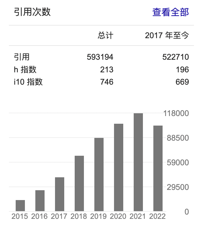 从下面这个记录可以看出,他的著作在谷歌学术上的引用量也是一骑绝尘。