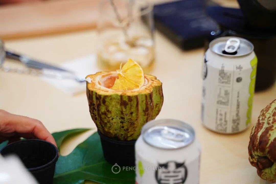也有选手选择冷萃可可碎,盛在可可果的大外壳里,还加了啤酒......