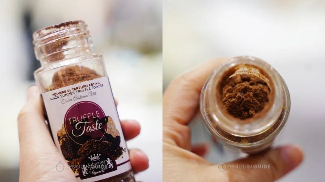 比如这个一小瓶就要200+的黑松露粉。虽说平时也能网购到黑松露粉,但其实95%原料都是牛肝。这瓶则是100%黑松露,香气niong得直窜鼻孔。