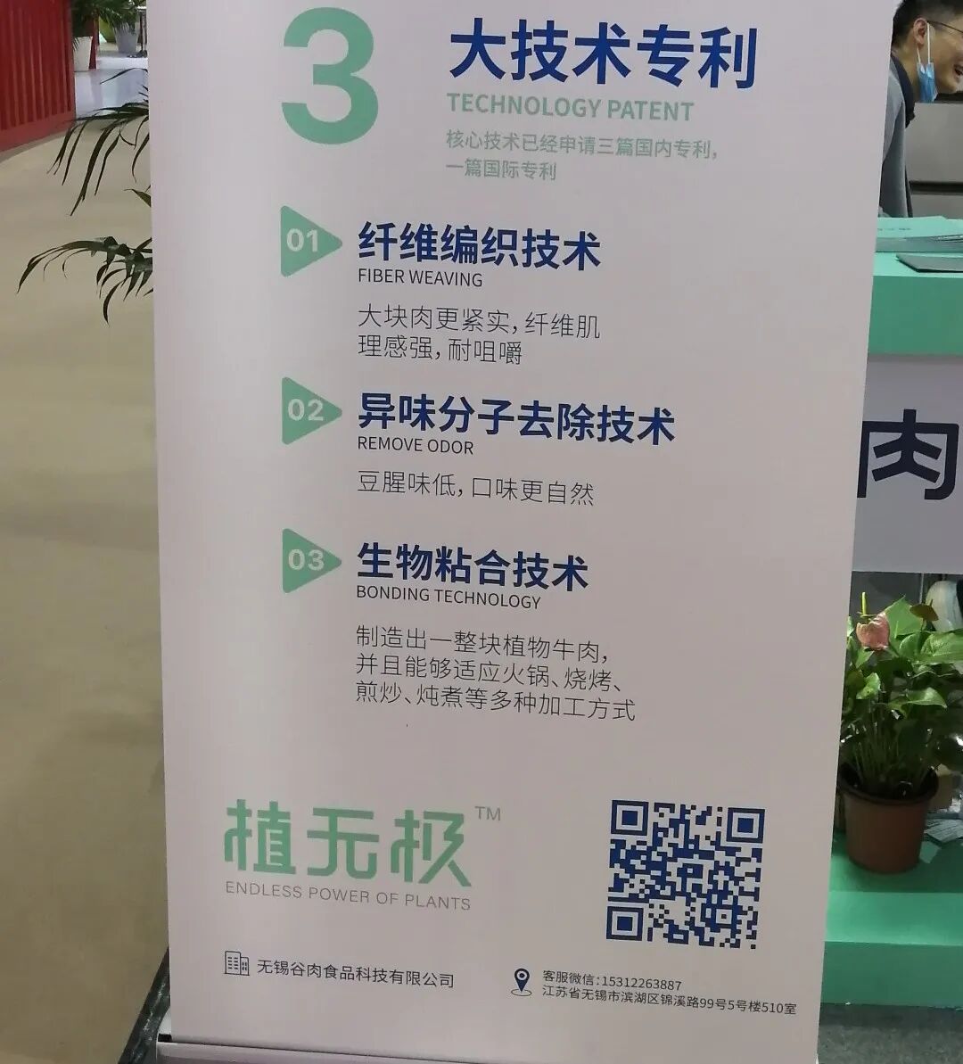 起初植物肉只有星期零、GreenCommon绿客门几个头部选手,现在品牌越来越多,每家都有自己的技术专利,比如用纤维编织技术来模仿大块肉的口感……