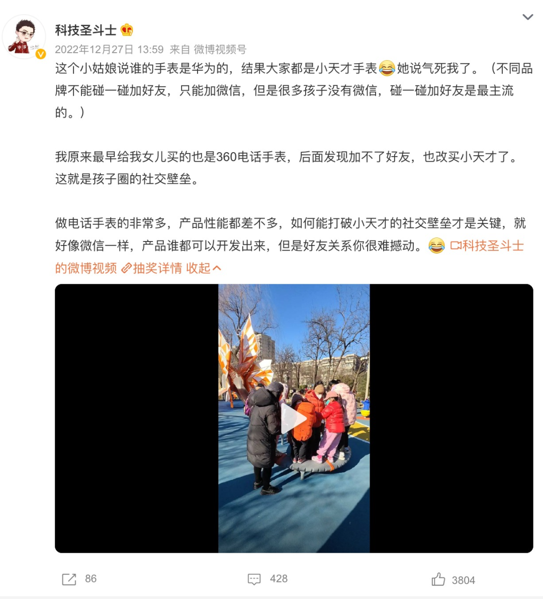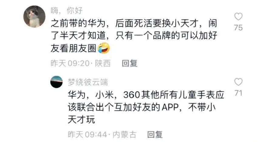 此事也常被大量家长诟病,称自家孩子买了苹果、华为的手表,但因为融入不了小天才圈子而遭到排挤。