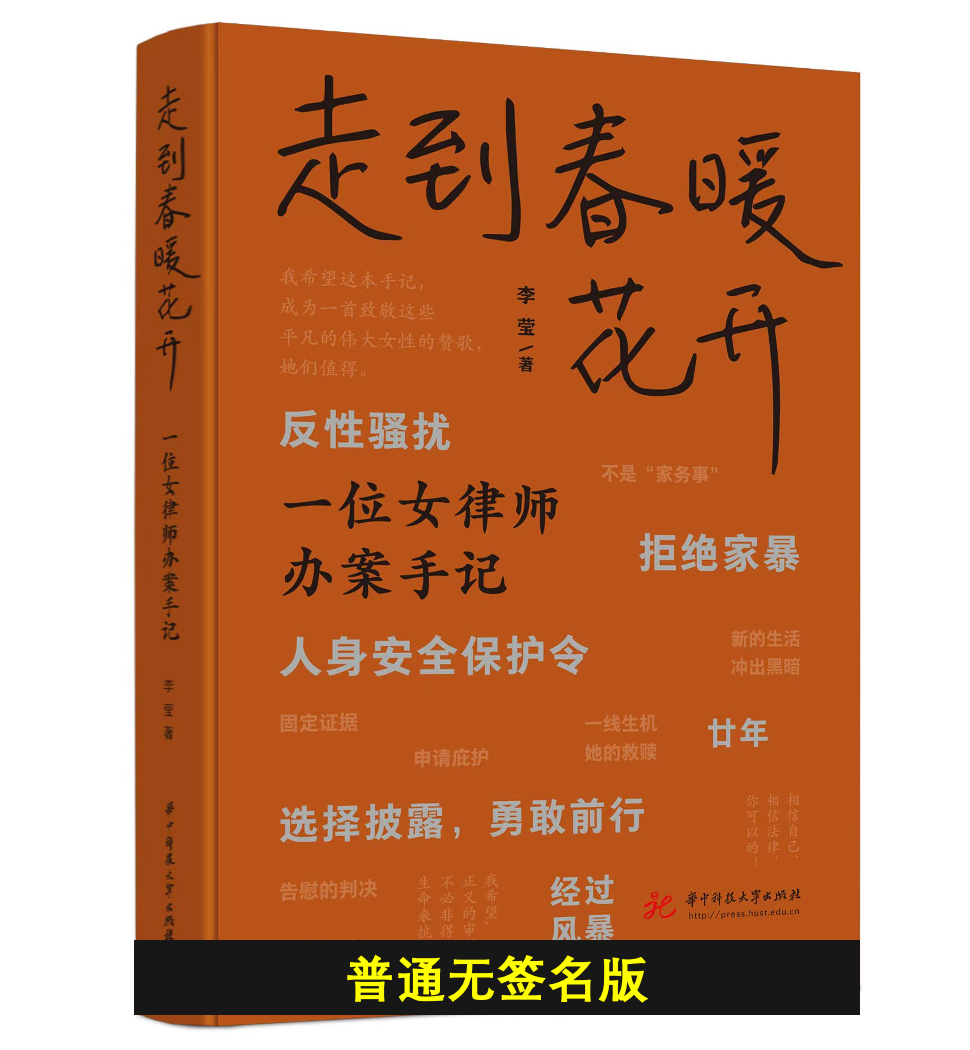 这些年,针对性骚扰的法律进步也是显而易见的,但是它和现实情况的变化似乎是平行线,彼此并不交融。这说明只有法律是不够的,徒法不足以自行。只有当我们能够给受害人更多的社会支持,给施暴人或者骚扰者更严厉的法律惩戒,才能够真正让更多受害人敢于发声。这些年源众也一直在努力。我们目前是一支由近20个省市近200人组成的志愿律师团队。2014年,我们开通了首个全国性民间“受暴妇女儿童法律帮助热线”——17701242202。在2016年,源众发起了“给她无暴力未来”受暴妇女紧急救助金。在2022年,我们开发了全国首个反家暴救助的公益小程序——“家暴救助”。在这20年当中,我还是蛮有感触的。数百名女性以案件当事人的身份走进了我的生命,她们的境遇让我难过,她们的勇气让我感动。与其说是我给了她们法律上的支持,不如说是我给了她们人生的支撑,或者说,是我们给了彼此支撑。这是一个生命影响生命的历程。她们的故事应该也是我们整个时代的缩影。我把我和她们的故事写进了《走到春暖花开:一位女律师办案手记》这本书当中。我也希望通过这本书,有更多的人能够站出来发声,有更多的人能够勇敢地维护自己的权利。我希望终有一天,我们每位女性都能过上更好的生活,没有恐惧、自由地选择自己的生活。我也希望我们每个人都为没有歧视和暴力的世界而努力,因为我们既是这其中的建设者,也是未来这样美好世界的享受者,所以大家共同加油吧。📖 李莹老师的新书《走到春暖花开:一位女律师办案手记》已在一席商店上架!