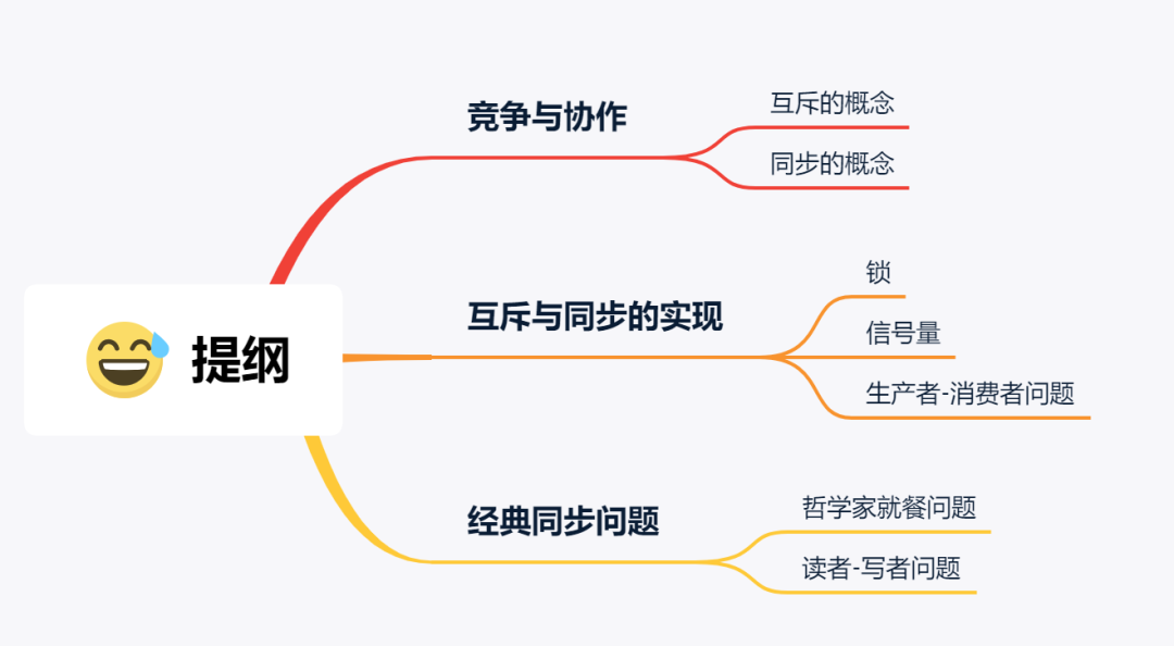 互斥解决了并发进程/线程对临界区的使用问题。这种基于临界区控制的交互作用是比较简单的,只要一个进程/线程进入了临界区,其他试图想进入临界区的进程/线程都会被阻塞着,直到第一个进程/线程离开了临界区。