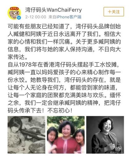 前不久,“湾仔码头”品牌创始人臧健和女士去世,享年73岁。