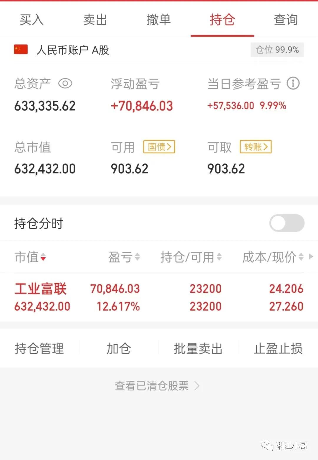 昨天买的时候是想着套利人民网来着,但是今天盘面走势非常好。想到昨晚英伟达大涨,工业富联也算实质标的,这波可以拿来对标英伟达,市场的认可度很高,也就没有卖出的理由了。