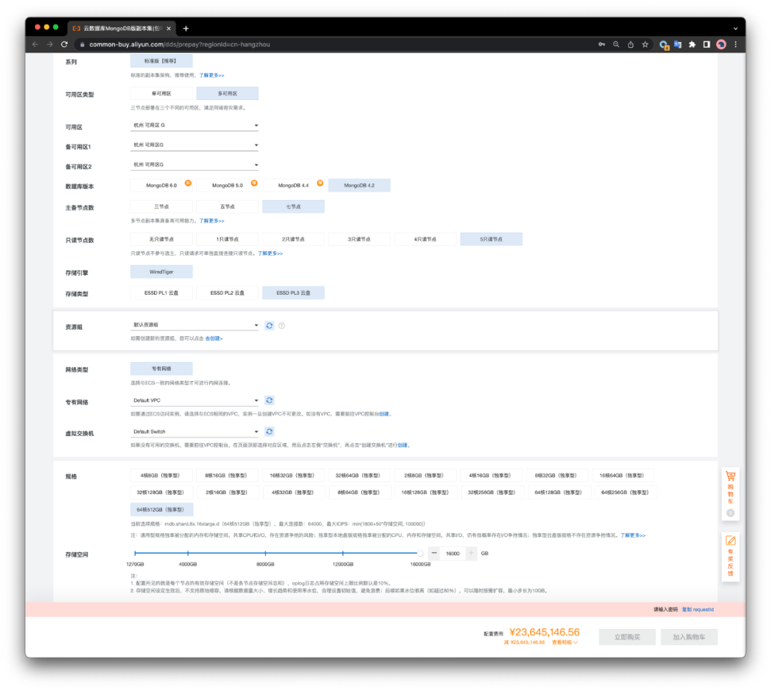 五年时间正好是常见服务器折旧年限,最大折扣,12节点(64C 512G),报价两千三百万。这个报价的零头就可以轻松把五年硬件代维轻松搞定,再加一个 MongoDB 专家天团为您按需定制随意自建了。