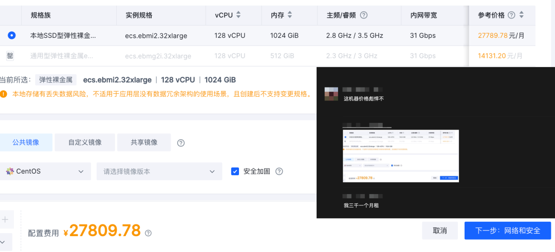 然而,只要你稍微把配置往上抬哪怕一丁点儿,核月单价就出现了数量级的变化,干到了二三十~一百来刀,最高可以翻到几十倍 —— 这还没有算上惊悚的 EBS 价格。用户也许只有在看到突然出现的天价账单时,才会意识到到底发生了什么。