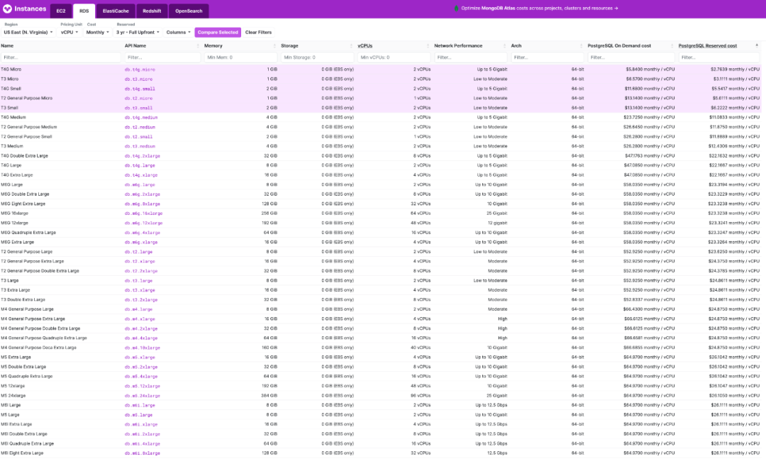 【10】AWS EC2 / RDS 报价查询:https://instances.vantage.sh/