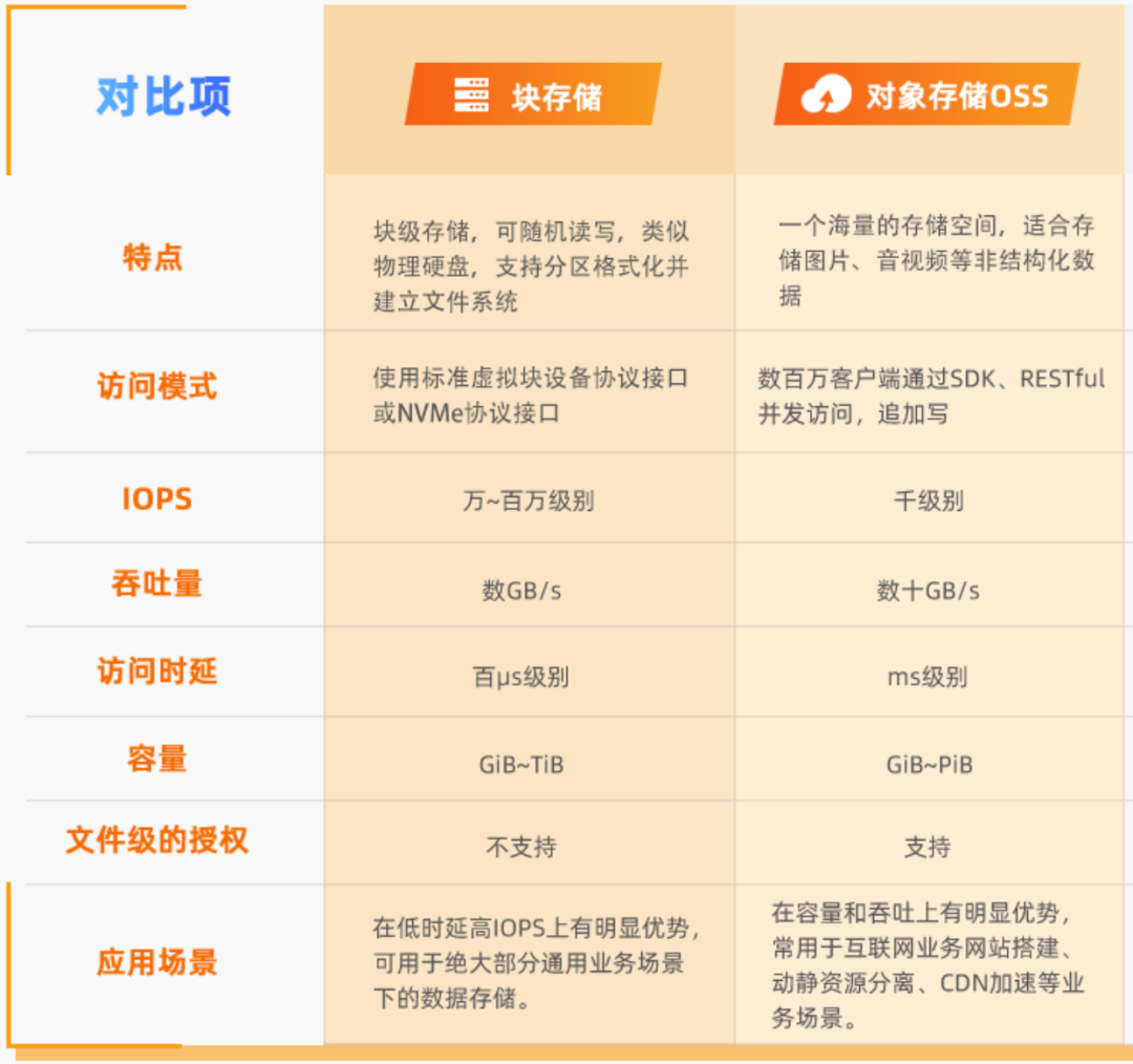 阿里云官网对 EBS 和 OSS 的定位