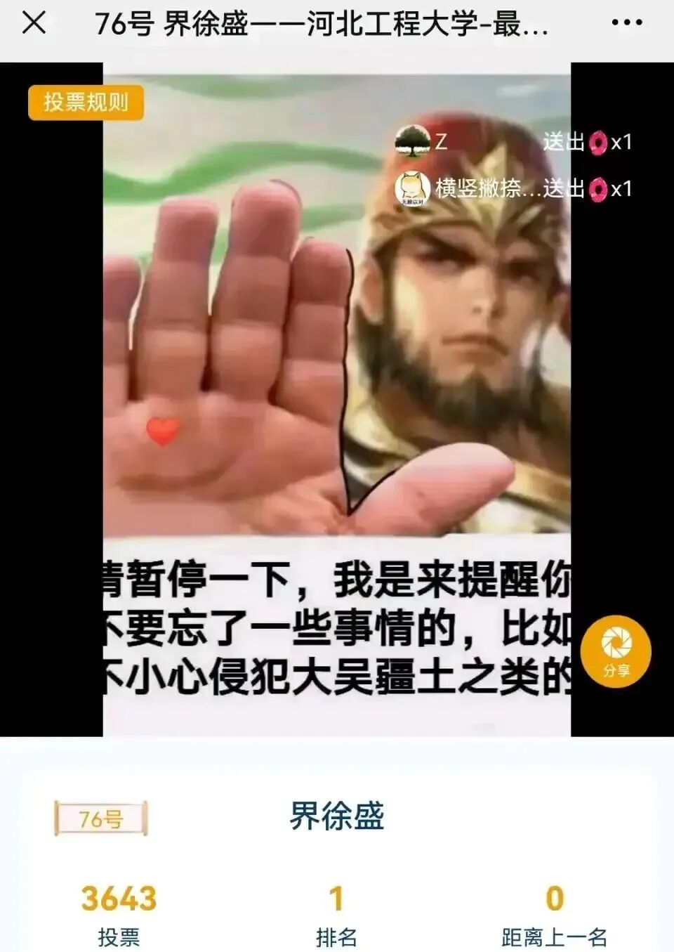 男孩的人气很高。有人在河北工程大学的校花校草选拔赛上发现这道靓影,在一众俊男靓女中脱颖而出,成为莘莘学子心目中当之无愧的年度“校草”。